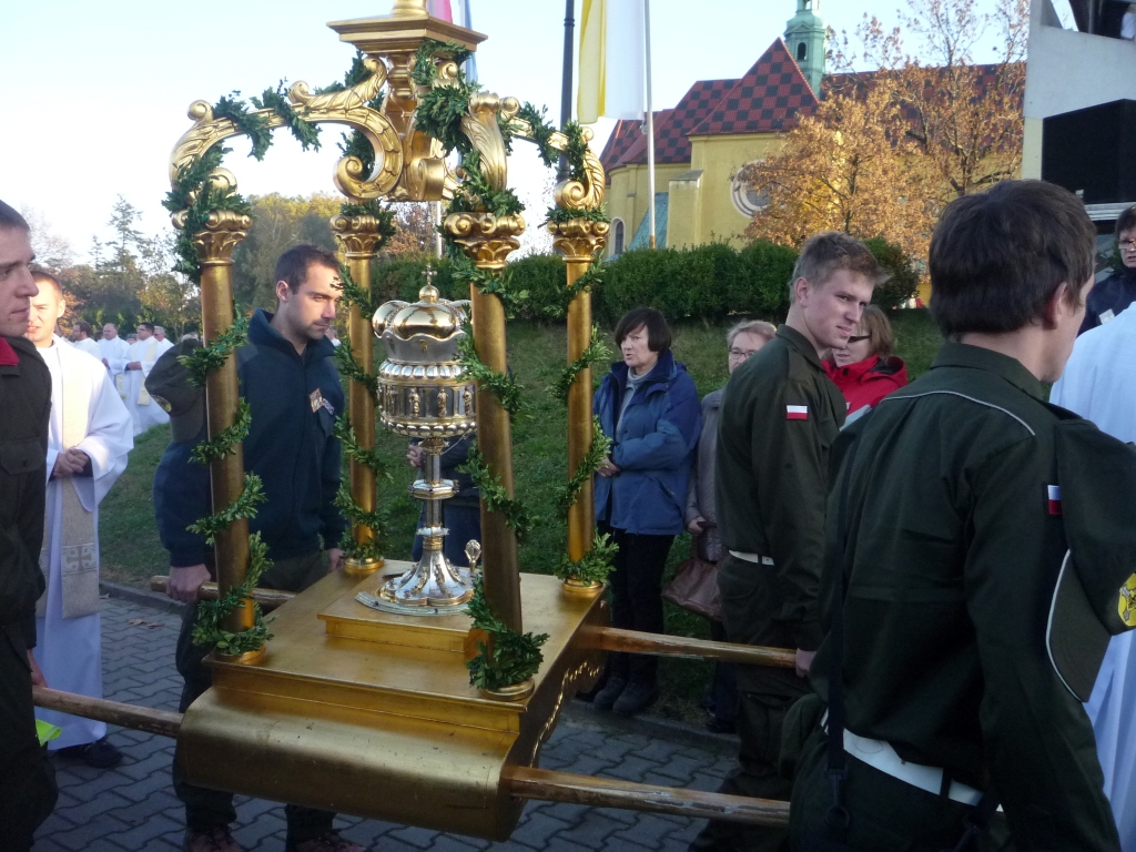 W minioną sobotę – 19.10.br. – odbyła się kolejna pielgrzymka do Trzebnicy, do grobu św. Jadwigi Śląskiej. Zakończyła się ona uroczystą mszą św, której przewodniczył abp Józef Kupny. Przy ołtarzu polowym przed bazyliką trzebnicką zebrało się ponad 10 tys. pielgrzymów. Z naszej parafii tradycyjnie wyruszyła grupa franciszkańska „złota 15”, pod przewodnictwem o. Mariusza Linika OFM, duszpasterza akademickiego. Wędrowało w niej około 450 pielgrzymów. Hasło tegorocznej pielgrzymki brzmiało: „Moje świadectwo wiary”. Oto foto-relacja.